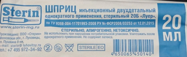 Шприц 20 мл Пластиковый. "Луер" имп.игла/Прогресс 180.